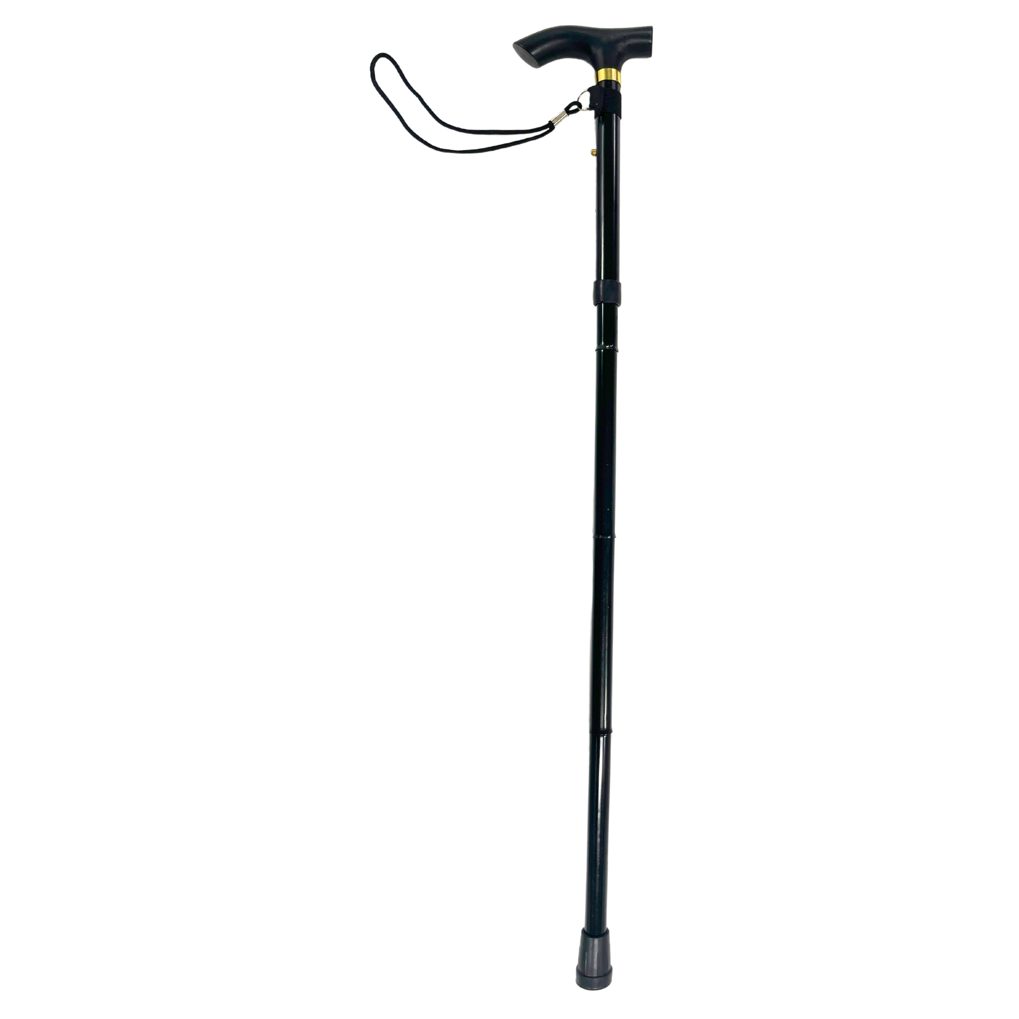 Lightweight adjustable walking stick with comfortable contoured handle and rubber ferule tip. Height adjust from 33" to 37" in 1" increments. 4 easy to use and secure push fit sections. Manufactured in durable and lightweight anodised aluminium.